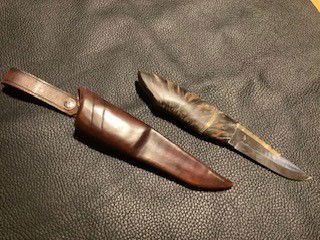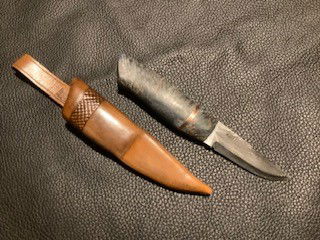 Til brukskniver bruker jeg normalt skaft av valbjørk eller stabilisert materiale. Blader kan være av rustfritt stål eller mønster smidd damask. Innlegg i skaft av messing, ny sølv eller kobber.